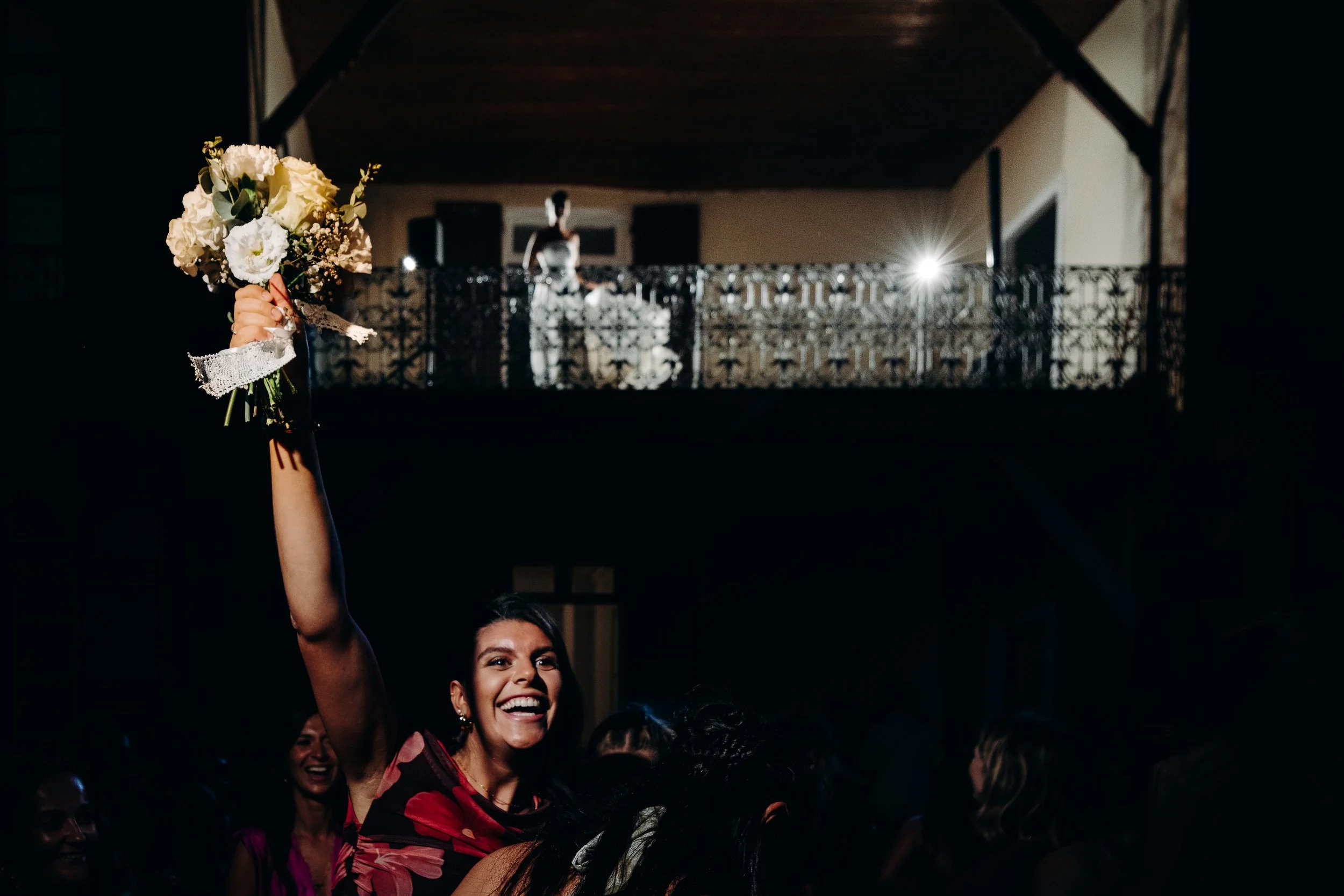 Après un lancer de bouquet du premier étage du Domaine du Mey, les invités et les mariés ont fêté cette union dignement !