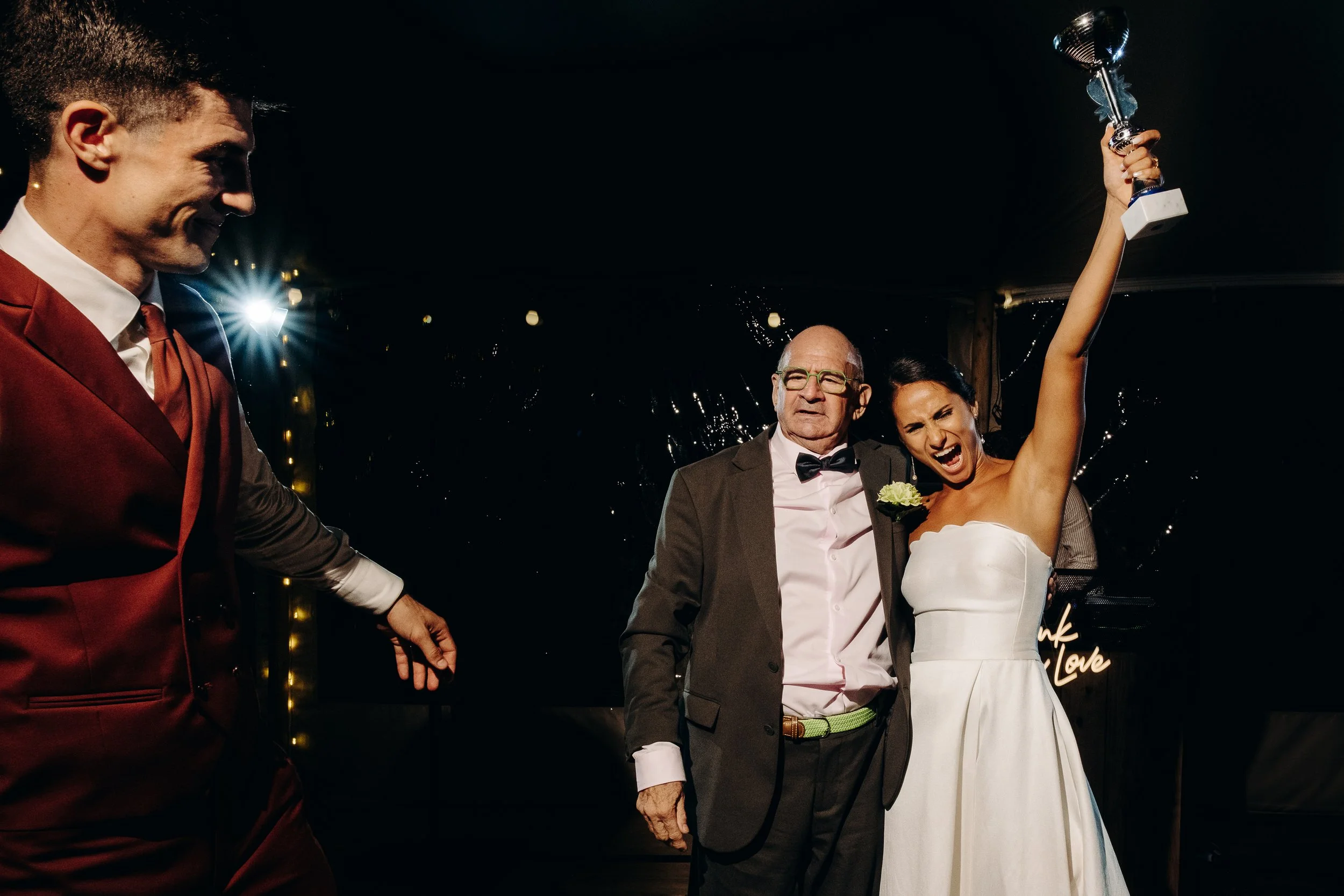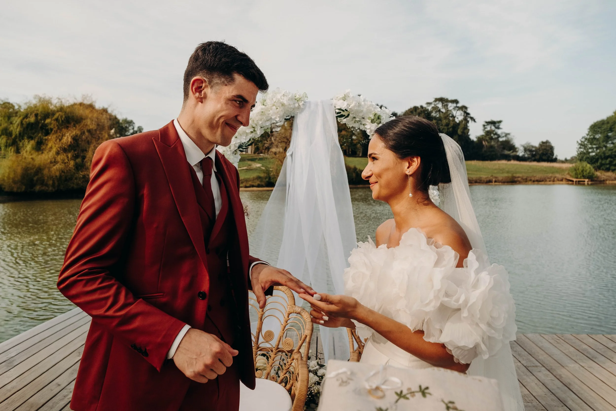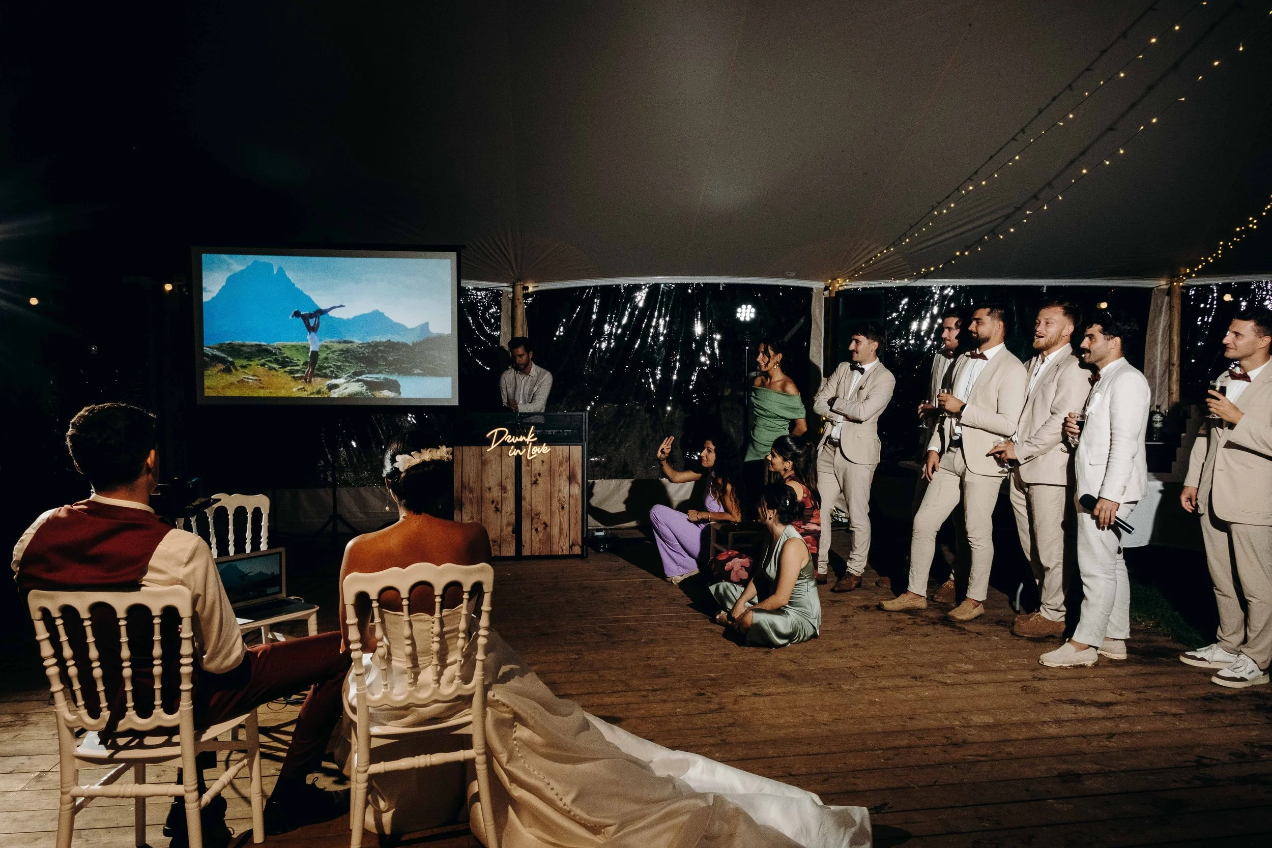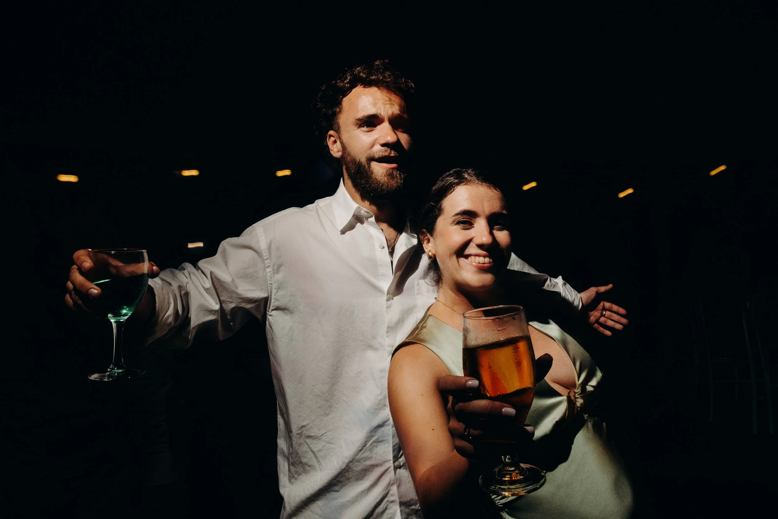 C’est le moment de célébrer ces nouveaux mariés ! Jusque là cachée dans une barque par les amis, la sortie d’une glacière remplie de bouteilles de champagne annonce le début du cocktail ! Les bouchons volent, les flûtes siglées Nina et Rodolphe tintent, l’ambiance est lancée. Du bonheur pur, des embrassades, des rires et beaucoup d’amour accompagne ces instants !