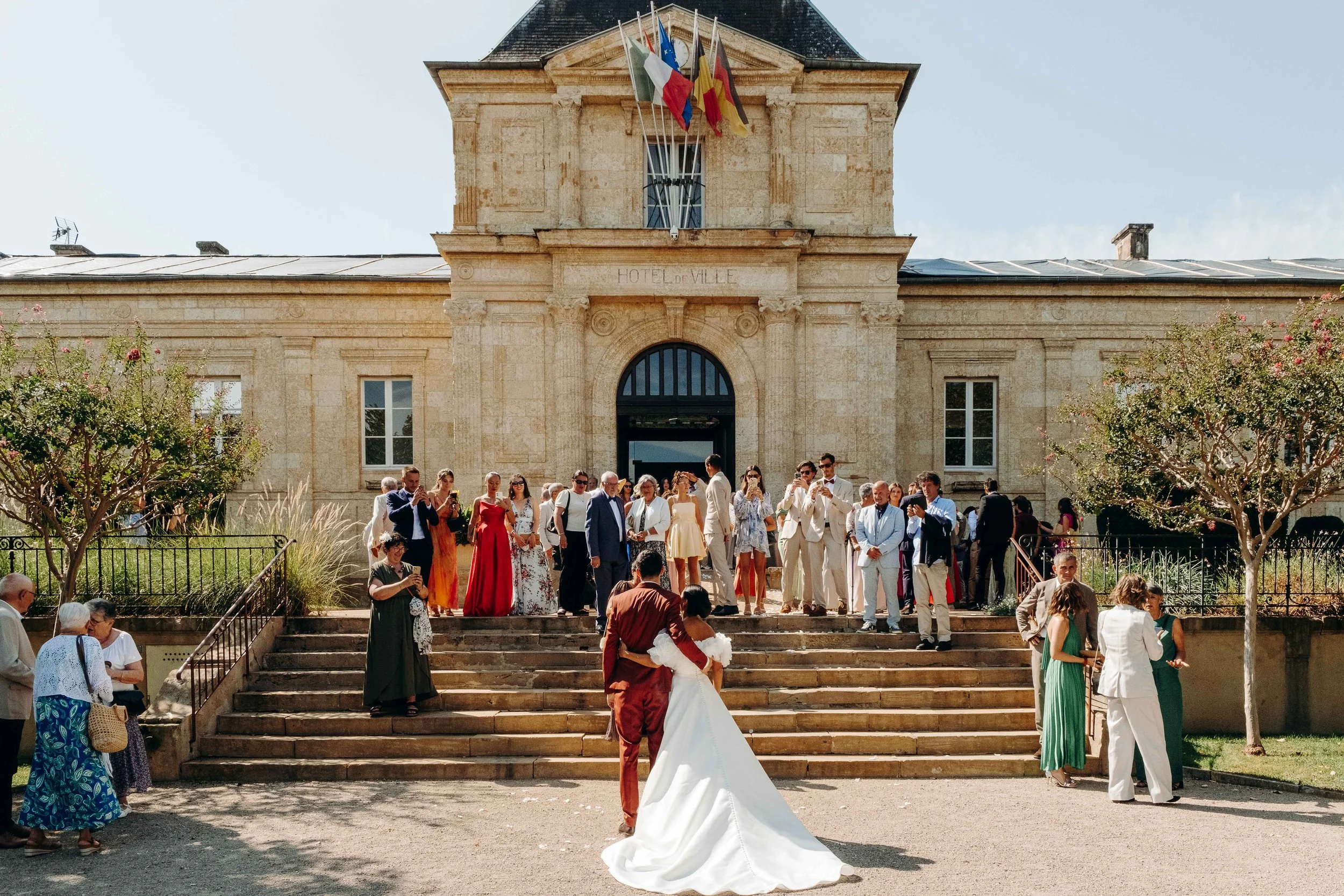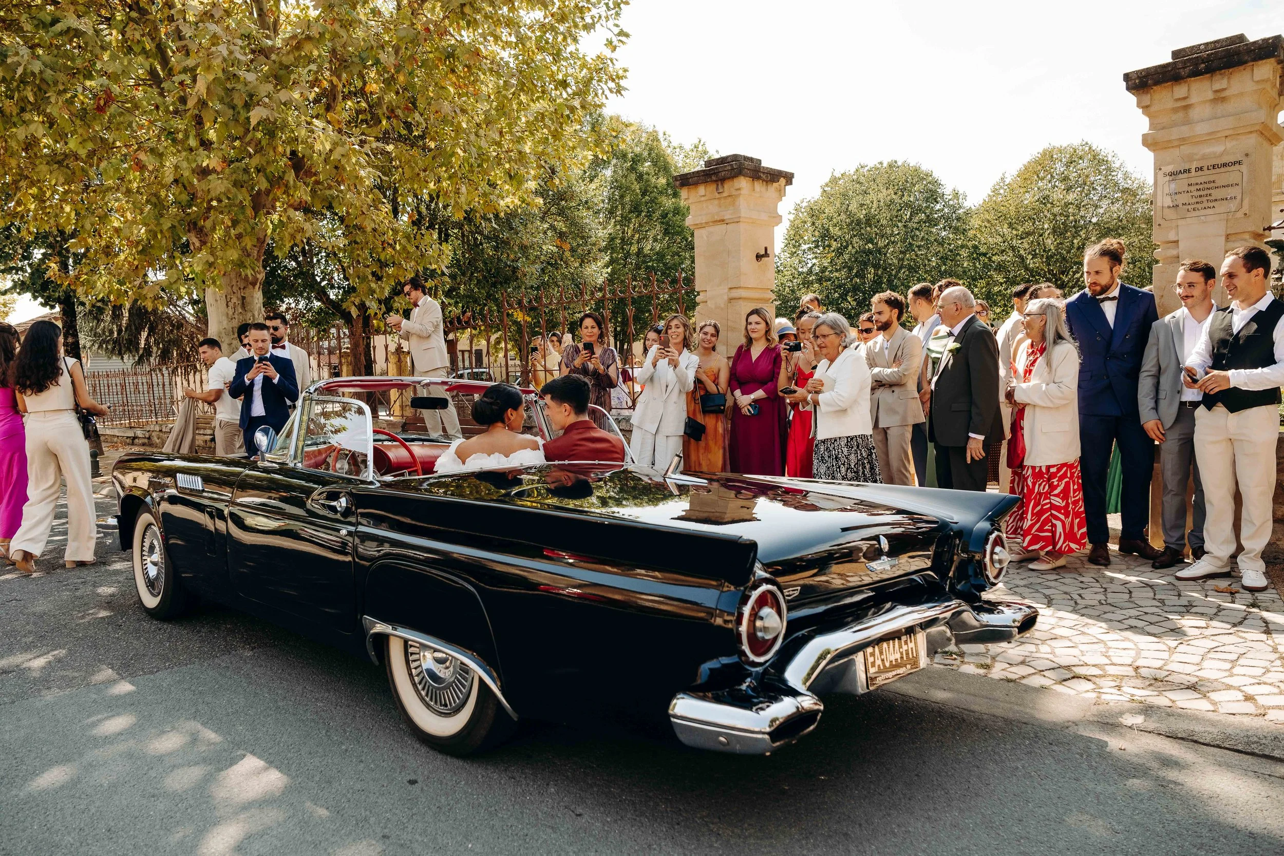 C’est après ce Oui le plus important de leur vie qu’ils rejoignent l’extérieur de la mairie de Mirande, où une voiture de collection les attend.