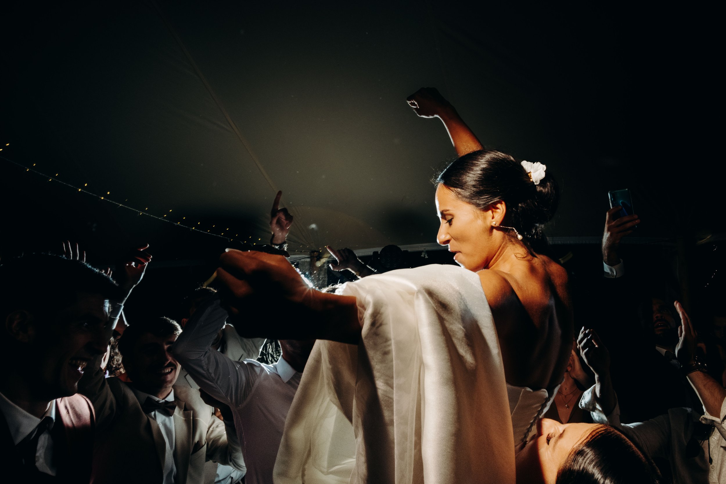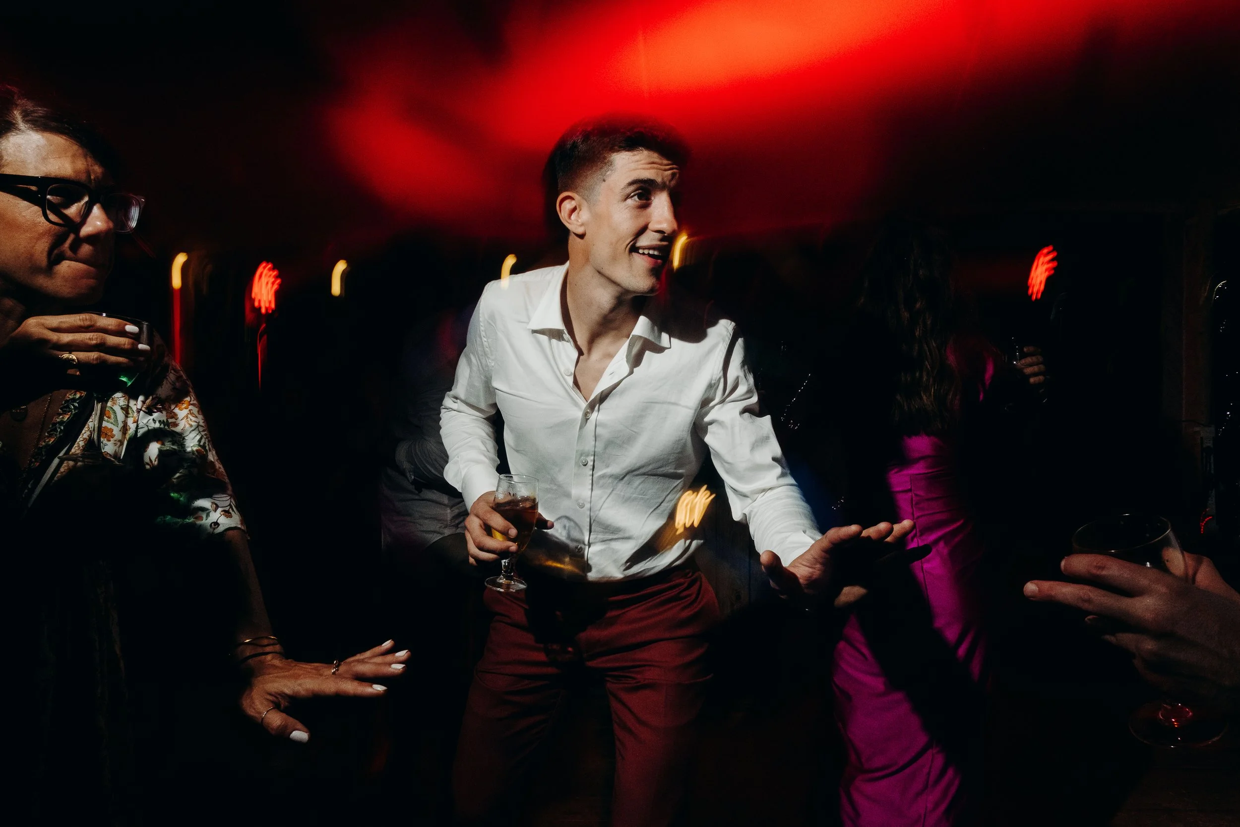 Au son d'Alex, le DJ de la soirée, Nina et Rodolphe enflamment la piste, et leurs proches ne sont pas en reste.